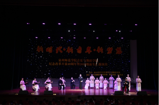 “泉州南音是中国现存历史最悠久的古音乐,保留了唐代以前传统古老的民族唱法。由2018级南音班全体同学表演南音《三千两金》展现了我院在保护和传播南音工作中独一无二的办学特色,带领观众们体味了一番浓郁的闽南传统文化气息