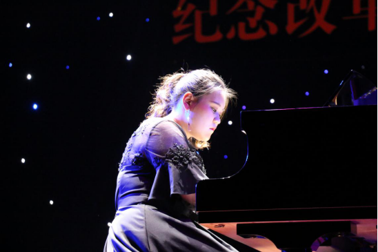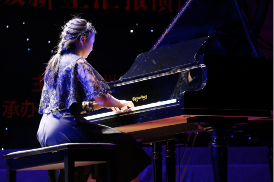 歌声如,琴声如涓。华丽的琴键、悦耳的音符让人犹如置身心灵花园。由2018级音凌凯溧、吴欣彤、2018级闽台章林逸洁弹奏的钢琴,或激昂或婉转,让人沉醉在黑白琴键的音符碰撞中。