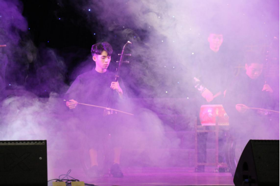 2018级南音陈鸿逸、2018级闽台张淇菡、2018音乐学的曾紫帆等人共同演绎流行歌曲串烧,脍炙人口的旋律加上动感的节奏带动了全场观众的热情互动,观众跟着旋律纷纷挥舞起手中的荧光棒,现场气氛十分热烈
