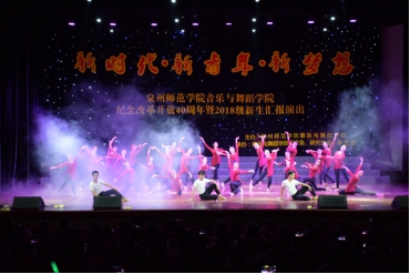 20181021日晚,音乐与舞蹈学院于陈祖昌大礼堂成功举办“新时代・新青年・新梦想”——纪念改革开放40周年暨2018级新生汇报演出。2018级全体同学均参与了此次演出,为大家带来了一场精彩纷呈的视听盛宴。