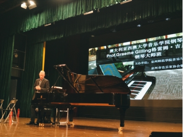 为拓展师生的学术视野,全面提升学生的专业素质,音乐与舞蹈学院精心组织并有幸邀请到澳大利亚西澳大学音乐学院钢琴系主任格雷姆·吉灵教授于11月8日莅临我院召开关于“谈钢琴演奏音色处理技巧”的专题学术讲座。我院全体师生共同观摩了本次讲座及大师班,全场音乐厅座无虚席。