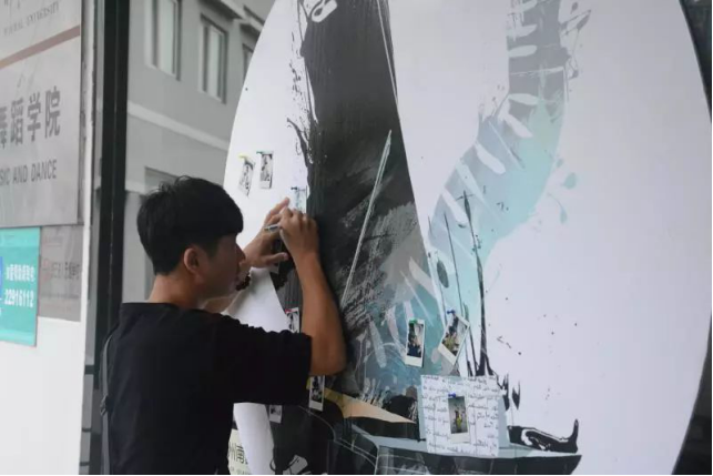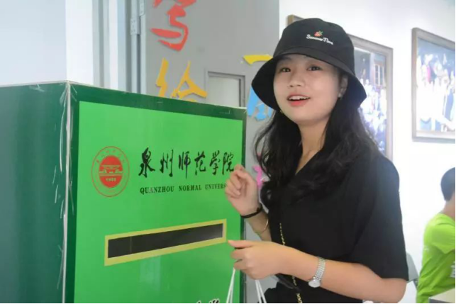 最后,迎接新生的是本次活动的重头戏——写给未来的一句话!新生们手执黑笔,在漂亮的明信片上一笔一划认真地书写下自己对未来大学四年的期许。一张张满载希望的明信片被投递到音舞学院特制的“时光穿梭机”邮箱中,这些明信片将会在四年后寄送到他们手中。