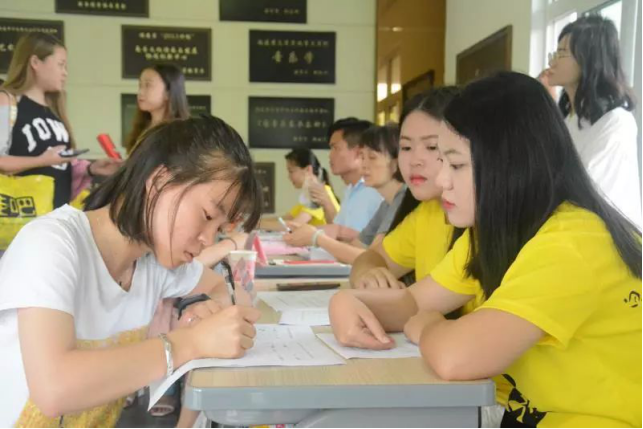 报到当天,学院门厅装扮一新,负责迎新的同学们统一着装,青春、活泼的志愿者服成为迎新活动中一道亮丽的风景线。第一时间迎接新生的是别具一格的签名活动,在学长学姐的引导下新生们在“签名墙”上留下入学后的第一个签名。