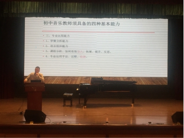 讲座伊始,吴老师抛出了一个引人深思的问题——“如何成为一名合格的初中音乐教师”,接着他从初中音乐教师所须具备的四种基本能力——面试、现场课、教学竞赛、基本功大赛的准备和提升,及自身的实习经历向同学们深刻分析了实习过程中可能遇到的问题以及相应的解决方案,吴老师幽默风趣的讲授方式及与同学们之间的互动更是将现场的氛围推向了高潮。