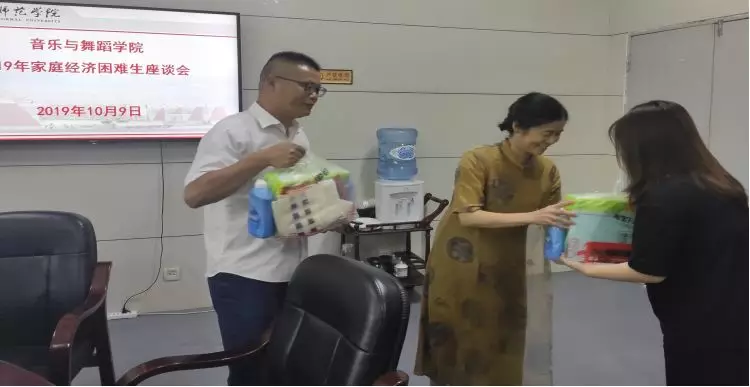 座谈会的最后,王丹丹院长和蒋双霖书记代表学院为同学们送上了学习、生活用品大礼包,鼓励同学们更加愉快地度过大学生活,努力成长成才。