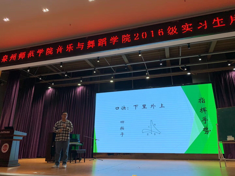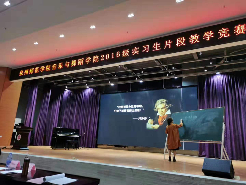 为展现我院师范生教育实习成果,促进师范生专业素养成长,彰显师范类专业认证“学生中心、产出导向、持续改进”的理念,1226日下午,音乐与舞蹈学院在特教大楼第一学术报告厅举办了2016级实习生片段教学竞赛,邀请来自泉州七中、培元中学、师院附中、华大附中的多位具有丰富教学经验的一线中学音乐教师与我院教师一同担任评委,吸引了众多教师和学生们到场观摩学习。