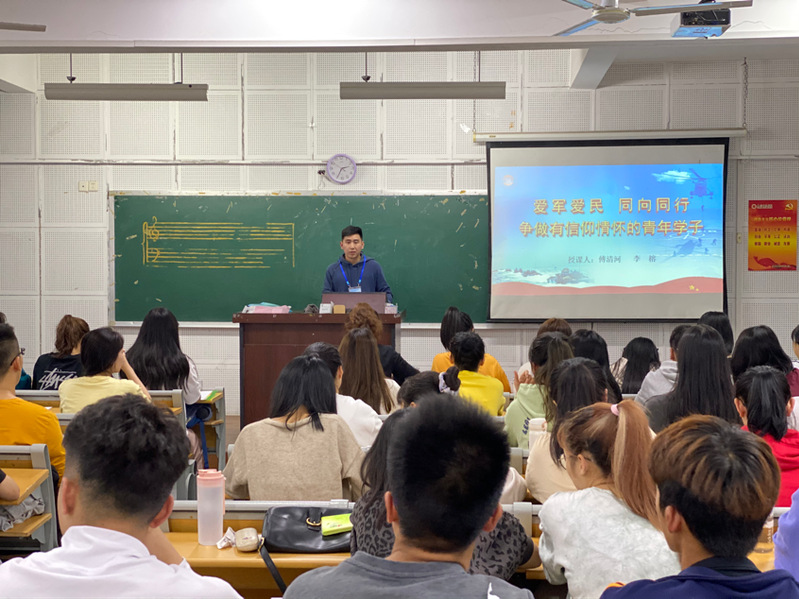 在艺术楼E102教室,傅清河作了《爱国爱军 同向同行 争作有信仰情怀的青年学子》的主题报告,他向同学们分享了自己从军以来的军旅生活,从他的口中,深刻体会到中国军人的艰苦奋斗和无私奉献傅老师语气平淡,却让同学们意识到和平环境背后,中国军人的负重前行分析当前国际形势,让同学们感受到国防的重要性与紧迫性,强调,青年在当前国防事业中发挥着重要作用,大学生在新时代开展中有着义不容辞的责任,要不忘初心,矢志强国,做一个有灵魂的人;珍惜时光,勤学笃行,做一个有本事的人;脚踏实地,不懈奋斗,做一个有作为的人;心系国防,热爱军队,做一个有情怀的人。