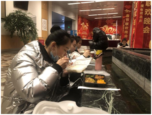 排练历时53天,同学们不仅要面对疫情防控的严峻考验,同时也要克服高强度、长时间的节目排练。台上一分钟,台下十年功,从抵达北京起,春晚排练争分夺秒,每天的排练安排从早上7点出发直至深夜才结束,有时甚至排练到第二日凌晨6点。同学们每日都是见缝插针的吃饭,有时累了就在演播厅就地打个盹,排练中受伤了也坚持到结束,一切的付出只为在春晚舞台上呈现出更好的自己,不辜负学校和学院的期许。