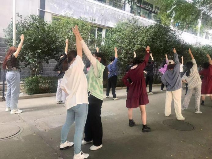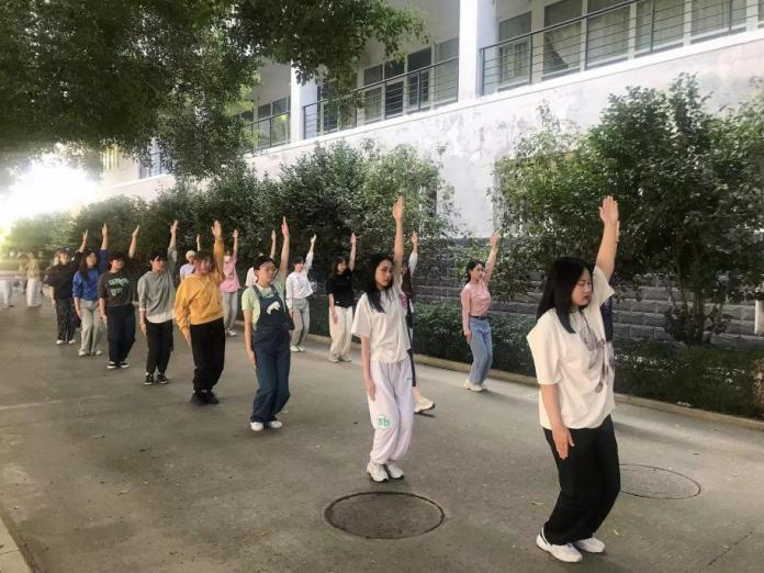 在院文艺部和体育部的组织下,同学们以饱满的热情投入到广播体操的排练。在排练过程中,同学们跟随各班负责人熟悉相关动作,并反复地加以练习,基本做到了规范、整齐,为即将举行的比赛奠定了良好基础。