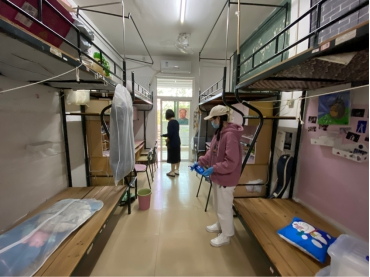 志愿者们佩戴好口罩、手套,进入宿舍后开窗通风,拿着消毒工具依次在宿舍门、洗漱台、地面、卫生间等地方喷洒消毒。此次宿舍通风与消杀工作有效地防止了细菌的传播,为即将返校的同学们给予了安全保障。(音乐与舞蹈学院学工办)