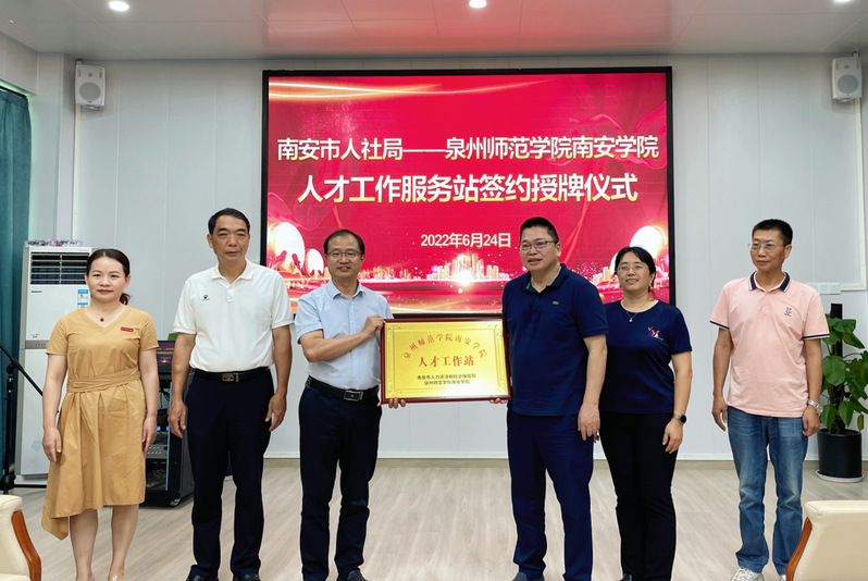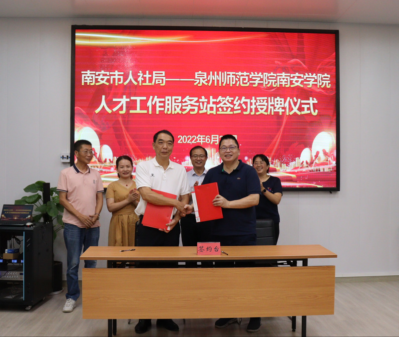 6月25日,院领导一行先到南安市人社局召开人才合作对接,举行南安市人社局——k8凯发(中国)天生赢家·一触即发南安学院人才工作服务站签约授牌仪式。南安市人社局党组书记、局长黄志军参加有关活动。座谈会上,黄昆民介绍了k8凯发(中国)天生赢家·一触即发南安学院的历史沿革和在人才培养、专业设置、师资队伍建设、毕业生就业、社会服务等方面的举措和成效,黄志军局长介绍了南安市产业布局、企业需求、引才政策、用工环境等,双方表示将以此为契机,进一步精准对接,在政校企研讨、人才输送、毕业生实习及就业等方面召开合作,助力大学生就业,助力南安市产业开展,切实提升“招才引智”工作实效。双方表示将以此为契机,进一步精准对接,在政校企研讨、人才输送、毕业生就业等方面召开合作,助力大学生就业创业,助力我市产业开展,切实提升“招才引智”工作实效。