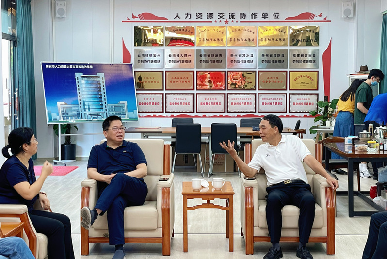 会后,院领导一行同南安市人社局相关领导实地走访了泉州市南翼置业开展集团有限责任公司、万家美针织公司等企业,与有关企业负责人进行座谈研讨并参观了企业的生产车间及教育基地,双方希望在提升人才培养质量、校企研究研讨、学生实习就业等方面加强协作。