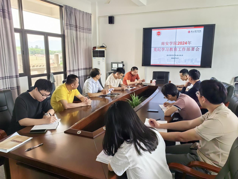 4月18日下午,南安学院在行政楼403会议室召开2024年党纪学习教育工作部署会,学院党委班子、各支部书记、各科室负责人参加会议,会议由学院党委书记洪少春主持。