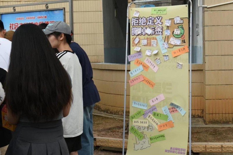 活动当天,诗山楼下洋溢着欢声笑语,同学们从忙碌的学习中抽身而出,踏入这个心灵的乐园。活动共设有“扭扭扭蛋机,扭走坏心情”扭蛋机区、“以漆为笔,以水为画”团扇漆画区、“拒绝标签”游戏活动区三大版块,丰富多彩的游戏和活动让大家沉浸其中,忘却了烦恼,学习生活上的压力在此刻得到了舒缓释放。