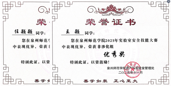 11月13日,组织师生参加学校实验室安全技能大赛,荣获非涉化类教师组优秀奖2项、学生组优秀奖2项。12月18日,举办“南安学院2025年实验室安全知识竞赛”,评选个人一等奖3名、二等奖4名、三等奖7名及班级优秀组织奖3个。12月初,在办公楼一楼大厅,以展板的形式展示实验室安全管理制度、实验室安全基础知识、实验安全事故案例警示、安全事故应急处理预案等内容,为师生普及实验室安全知识。并组织学生参加全校实验室安全海报设计大赛,荣获一等奖1项、三等奖4项、优秀奖3项,学院荣获优秀组织奖。