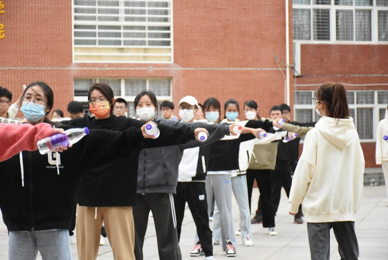 秋风习习,呼呼作响尽管充满疲惫和困意,却未能阻挡资环学子训练的脚步。每天上午六点二十分,参训员准时在邱天生实验楼前的空地集合并召开广播体操训练。第一缕阳光照在邱天生楼前,映撒在他们身上。资环学子昂首挺胸,在训练员的带领下,踏着广播体操的旋律,伸臂、蹬腿、扩胸、转体…他们动作娴熟、张弛有度,一遍又一遍精准实行每一个动作;他们精神饱满,步调一致,尽显资环学子的青春风采。虽然训练过程有苦有累,但心中对胜利的期待始终激励鼓舞着同学们。