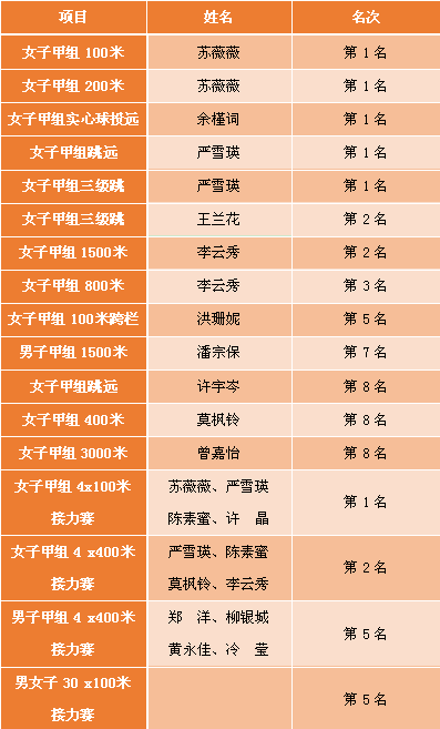 优异的成绩来源于运动健儿们敢于奋力拼搏、不断超越自我,全身心投入各项赛事,展现了不服输、不放弃的体育精神和奋进向上的昂扬斗志。在赛场上他们奋勇拼搏,即使身体由于前期训练跌倒、扭伤等,但是他们忍着疼痛、英勇迎战。当然,优异的成绩也离不开后勤服务保障人员。学院领导老师高度重视此次校运会,投入大量的人力物力财力,为运动员购置各项医疗用品及专业运动设备;主要学生干部们也不辞劳苦、默默付出,赛事前期组织带队训练、准备各项物资;在赛事中期组织资环学子为运动员们进行呐喊助威,田径场上“资环加油”的呐喊声震耳欲聋,运动员们纷纷表示正是由于同学们的呐喊助威声让他们更有动力冲刺赛事;在赛事后期第一时间去搀扶运动员、为他们递上饮用水、给他们进行放松。这无不体现出资环学院井然有序、团结友爱的精神风貌。