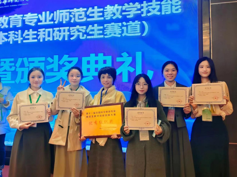 近期,第十一届全国科学教育专业师范生教学技能创新大赛决赛(本科和研究生赛道)落下帷幕,我院学生取得佳绩:许凯晴(指导教师:李子蓉、杨诗源)取得本科生组一等奖,柯莹(指导教师:杨诗源、李子蓉)取得本科生组二等奖,郭琳漩(指导教师:杨诗源、李子蓉)、林菲(指导教师:杨诗源)、黄玲玲(指导教师:杨诗源)取得本科生组等奖。