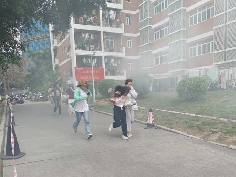 演练前期进行了详细的规划和准备,本次演练地点分为A、C两个场区,资环学院2021、2022、2023届在校学子悉数参加。同学们听到哨声后,在辅导员和学生干部的指挥下迅速做出反应,一排扶楼梯,一排顺墙根,低头弓腰,沿着路线有序撤离至安全区域。演练结束后,由指导老师进行了点评和总结,并且补充了安全知识讲解,着重强调了要用沉着冷静的心态应对危险,不要慌乱不能大意,要用正确有效的方法快速逃生。