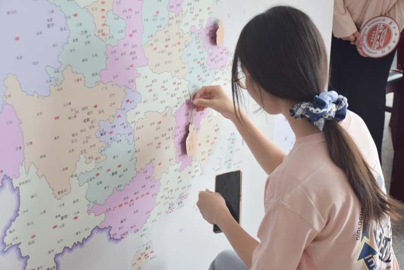 我院在迎新站准备了“绿水青山元素太空架幕布签到墙”,新生拿起笔,在墙上签下自己的名字,让青春的印记与学院的色彩相融;新生完成签到后,写下四年后对自己的期许,印着学院形象的定制笔、精美的圆扇……等待着新生开启,让新生在参与中感受学院的文化,在轻松愉快的氛围中迅速融入学院大家庭。