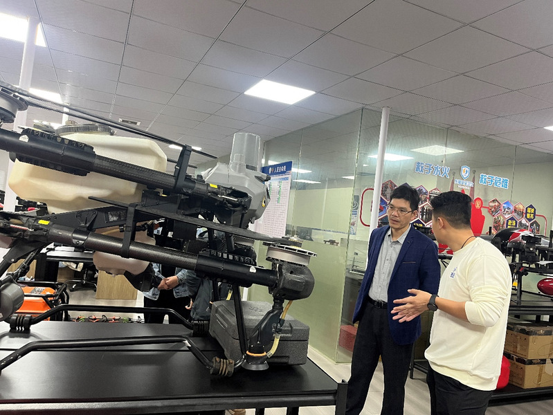 在董事长陈志贤的陪同下,陈永山副院长一行实地参观了企业展厅、研发测试中心及实训场地,详细分析公司主力机型在航拍测绘、电力巡检、环境监测、物资吊运、应急救援等多元化场景的应用成果。团队重点考察了无人机技术在精准地理信息获取、大气与水环境立体监测、生态资源动态调查等方面的解决方案,并就数据精度、行业适配性与技术前沿趋势同企业技术专家进行了深入研讨。