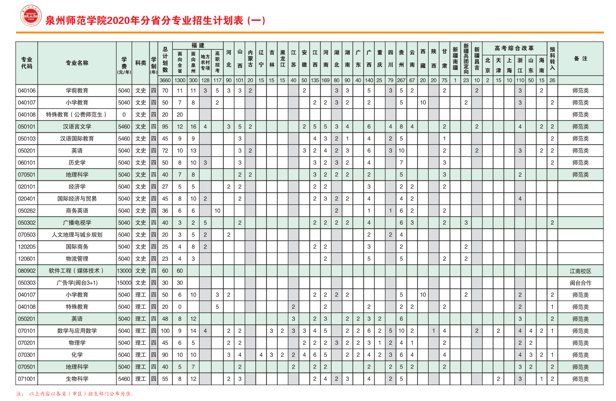 k8凯发(中国)天生赢家·一触即发2020年普通本科分专业招生计划表